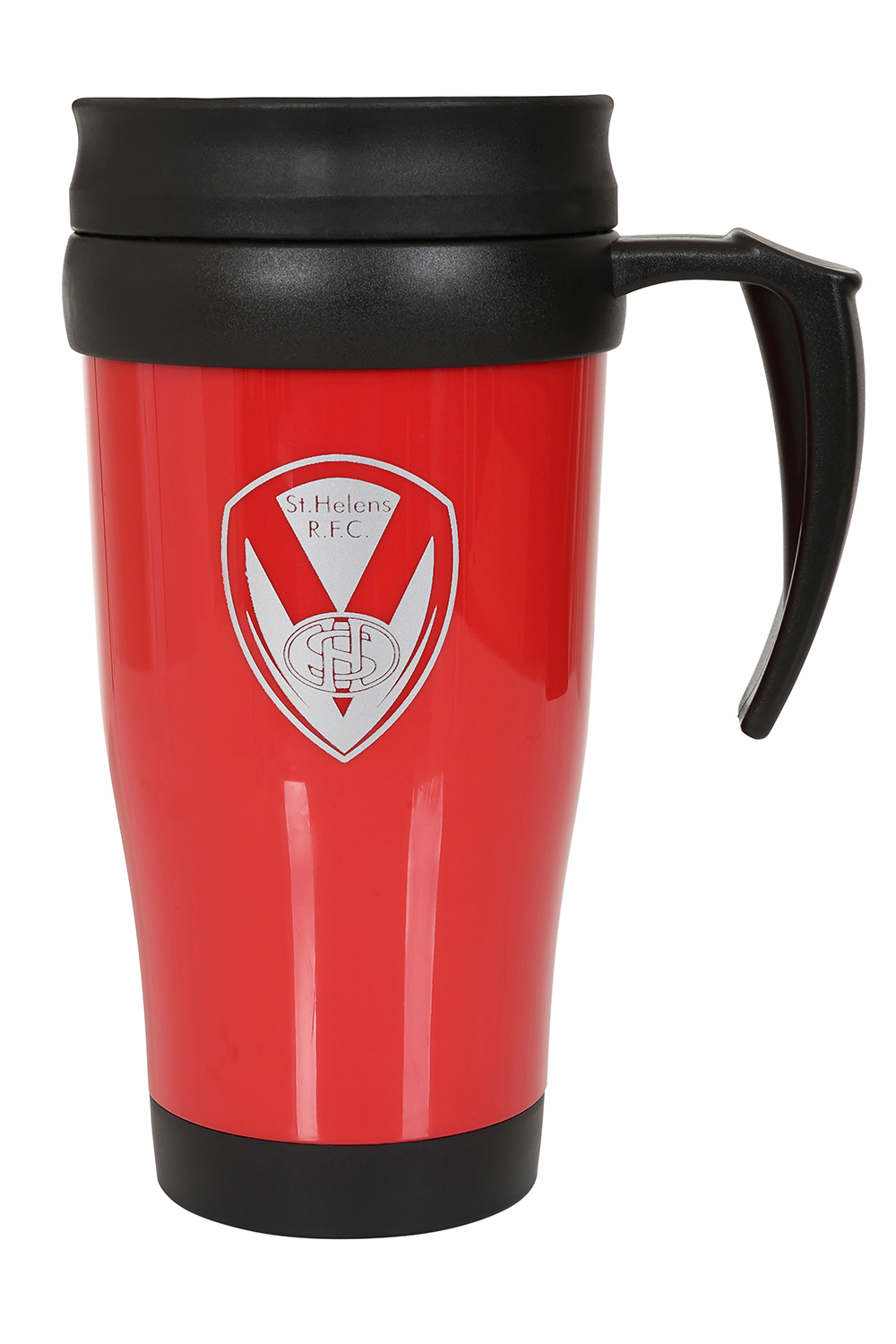 Winter Warmer Gift Set, comprising Saints red and white Scarf and red Saints Thermo Travel Mug. A combination to take to the match or to accompany you on a winter night out.