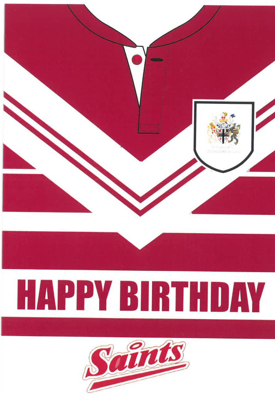 Front of Card has the design of our 2026 Home Kit with Happy Birthday in text. The Saints Wordmark lies in the lower level of the card.