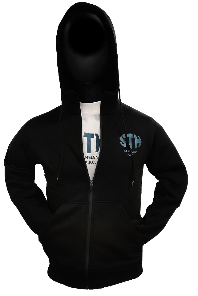Black Adult Zipped Hoody with Green printed STH Logo on the left chest.