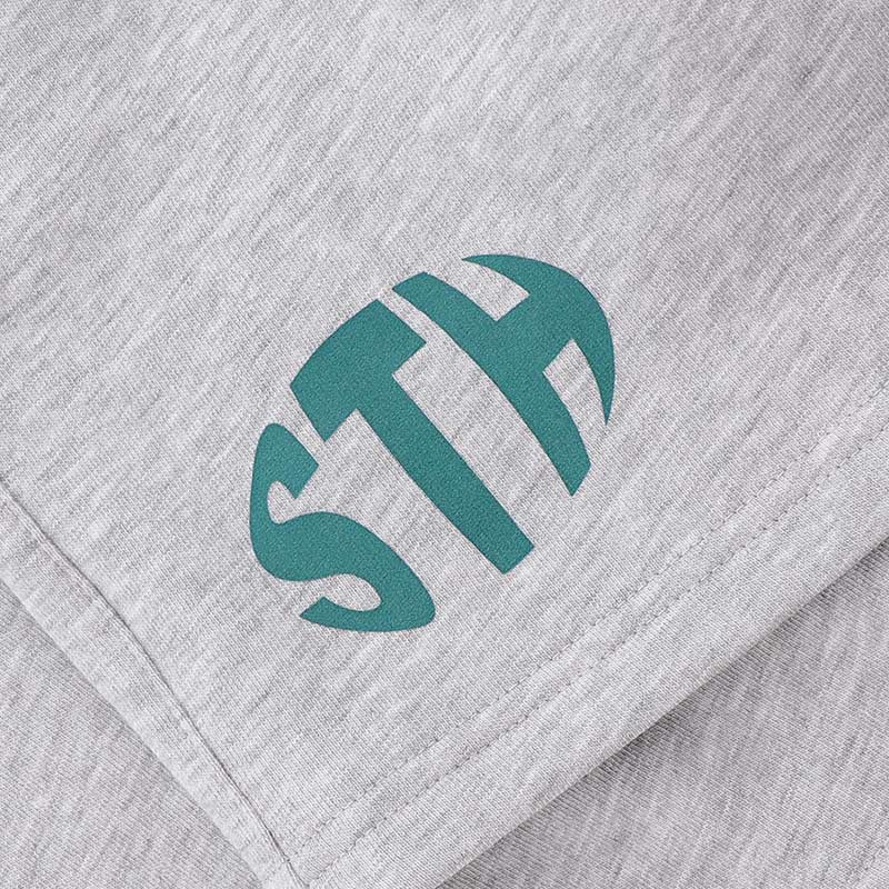 Grey with Green STH Logo on the right leg and O'Neill's logo on the left.