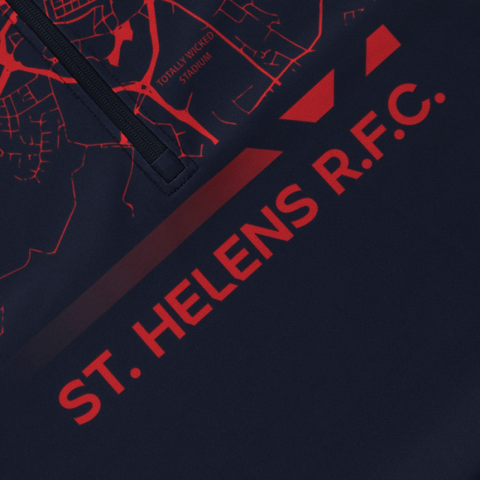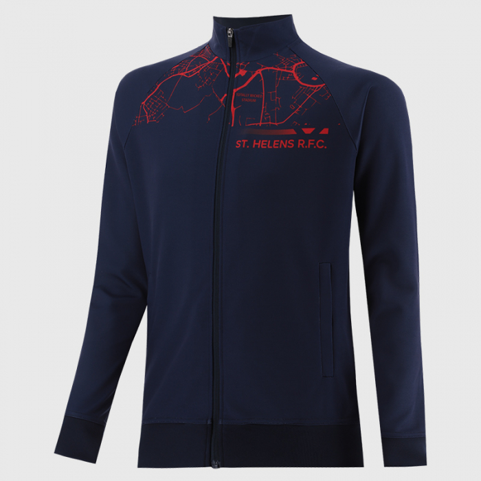 The Full Zip has a Navy body and sleeves, with a red Map image on the upper chest. The map is a representation of the local area including the Totally Wicked Stadium which is where the Captain's Run take place.