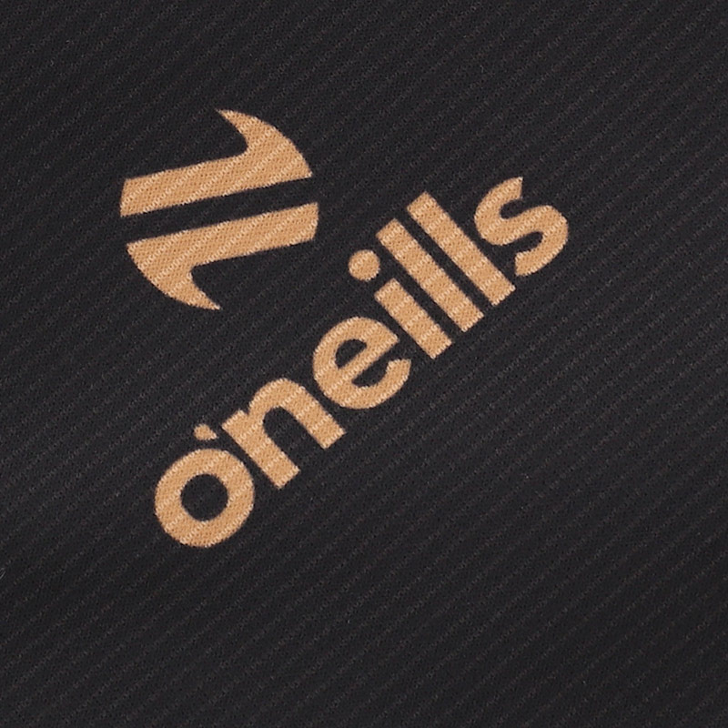 The Jacket is black, with gold flashes on the upper shoulders. There is a tonal gold Saints crest on the left chest and O'Neill's logo on the right chest.