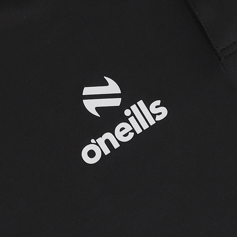 The T-shirt has a Black body, with a red contrast panel on the upper front chest. There is a tonal crest on the left chest and an O'Neill's logo on the right chest.