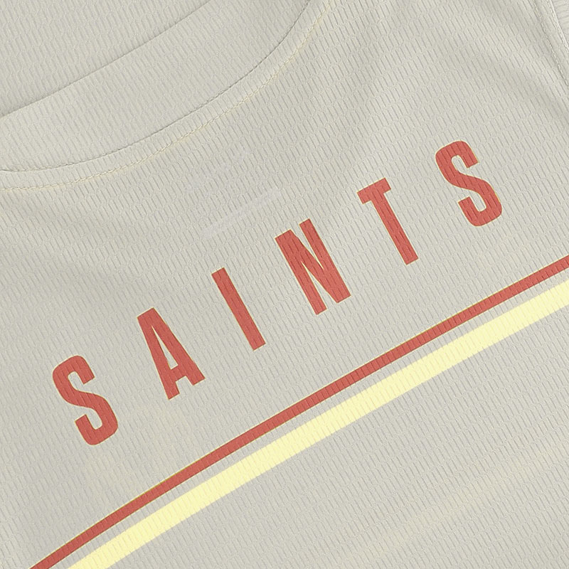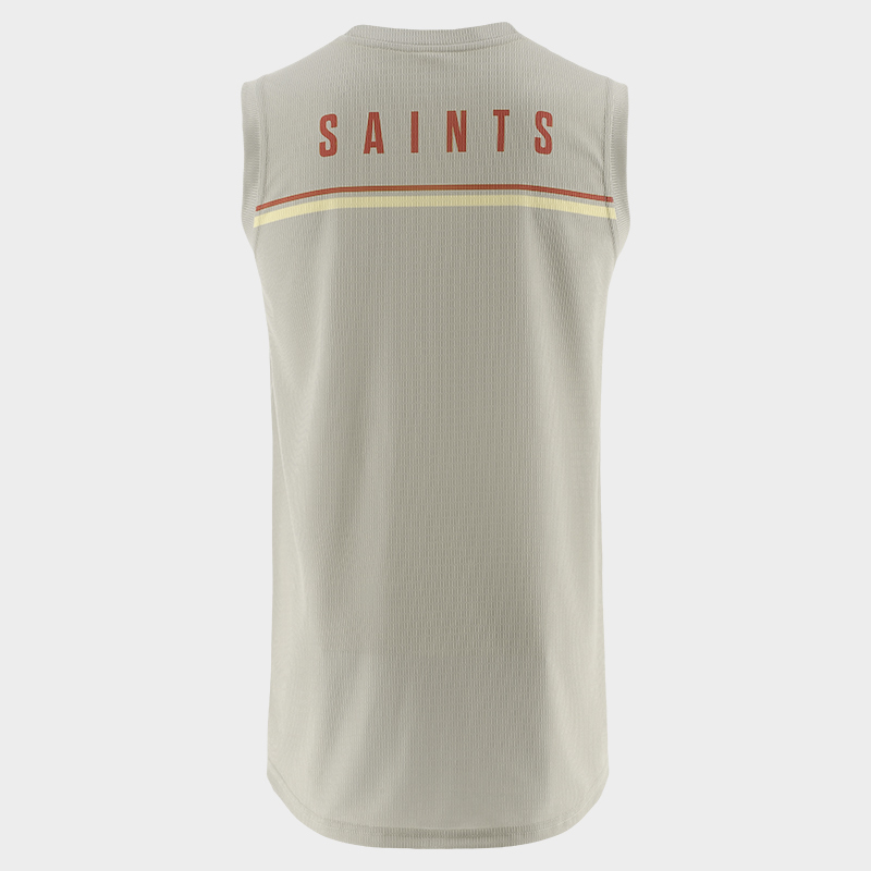 The back neck of the vest has the text SAINTS in Rust Coloured letters. .