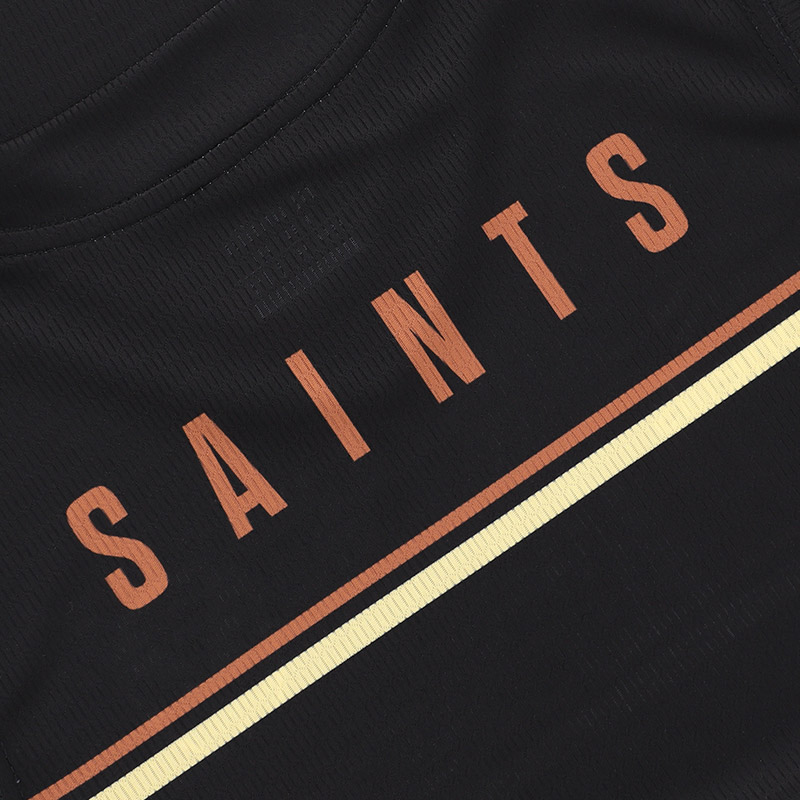 The back neck of the vest has the text SAINTS in Rust Coloured letters. .