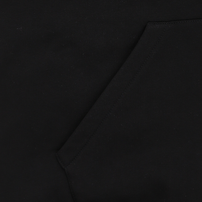 The Hoody has a Black body, with a red contrast panel on the upper front chest, and red flashes on the upper sleeves.