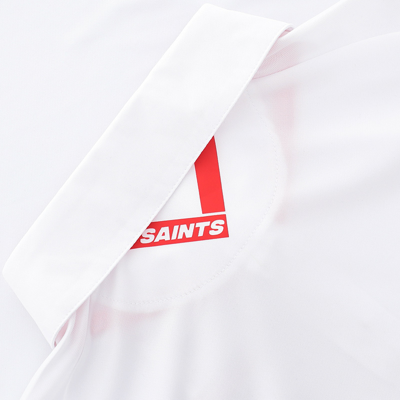 The back neck of the Polo has red vee logo with the text SAINTS through it.