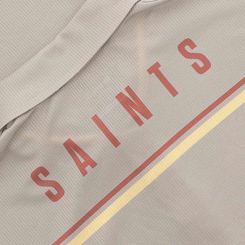 The back neck of the Polo has the text SAINTS in Rust Coloured letters sitting above similar two tone lines.