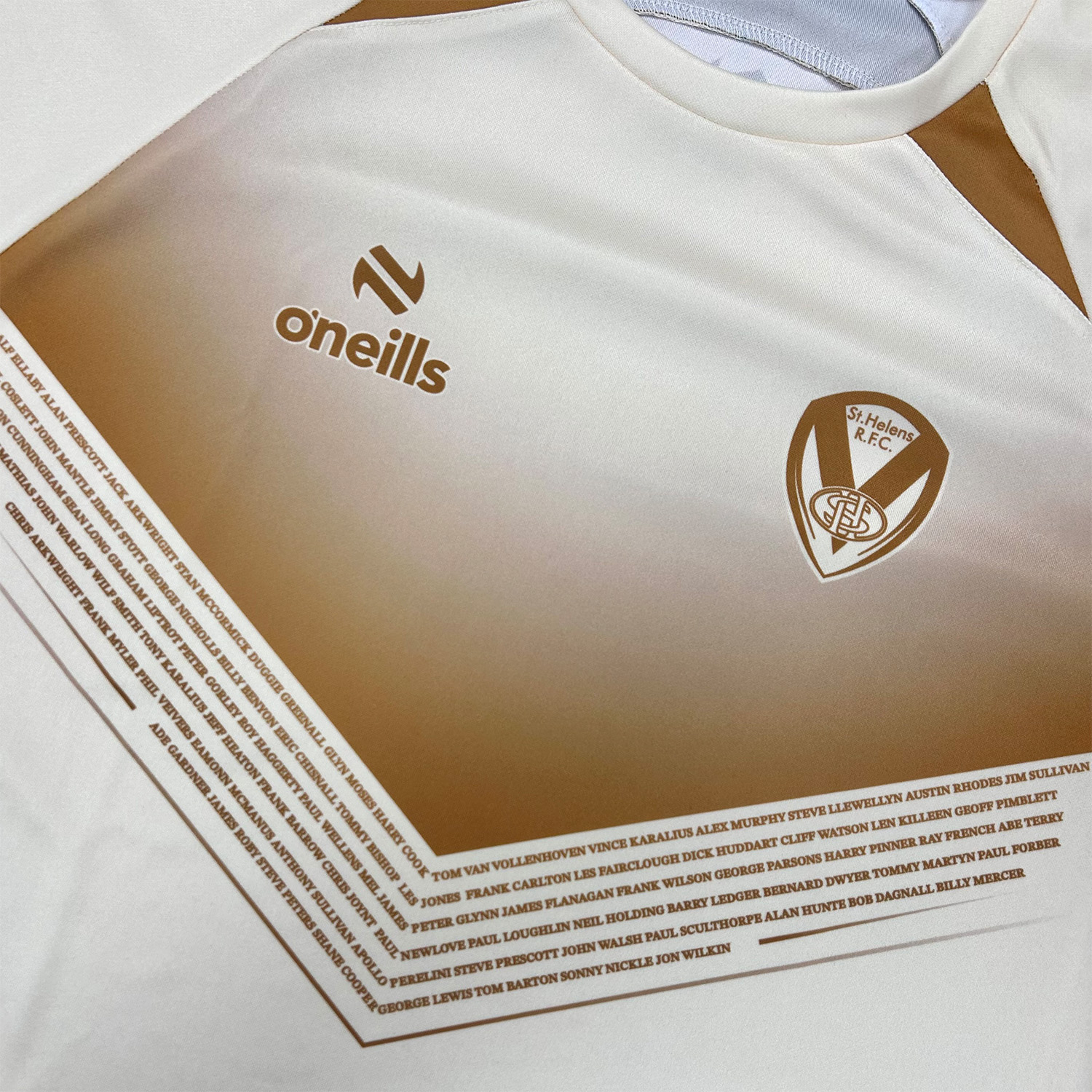 Below the chevron is a Vee in gold text made up of the names of all players and staff who have been inducted into the St.Helens R.F.C.Hall of Fame.