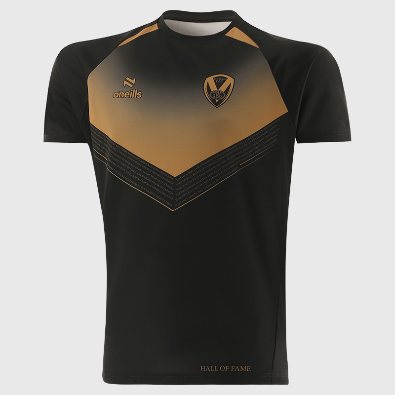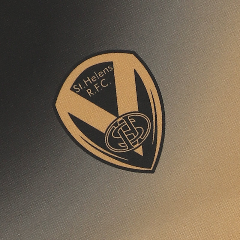 Below the chevron is a Vee in gold text made up of the names of all players and staff who have been inducted into the St.Helens R.F.C.Hall of Fame.