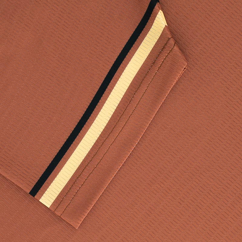 The T-Shirt is a Rust coloured body, with a modern stylish two colour line on the upper front chest and Sleeves. There is a tonal crest and O'Neill's logo above the 2 lines.