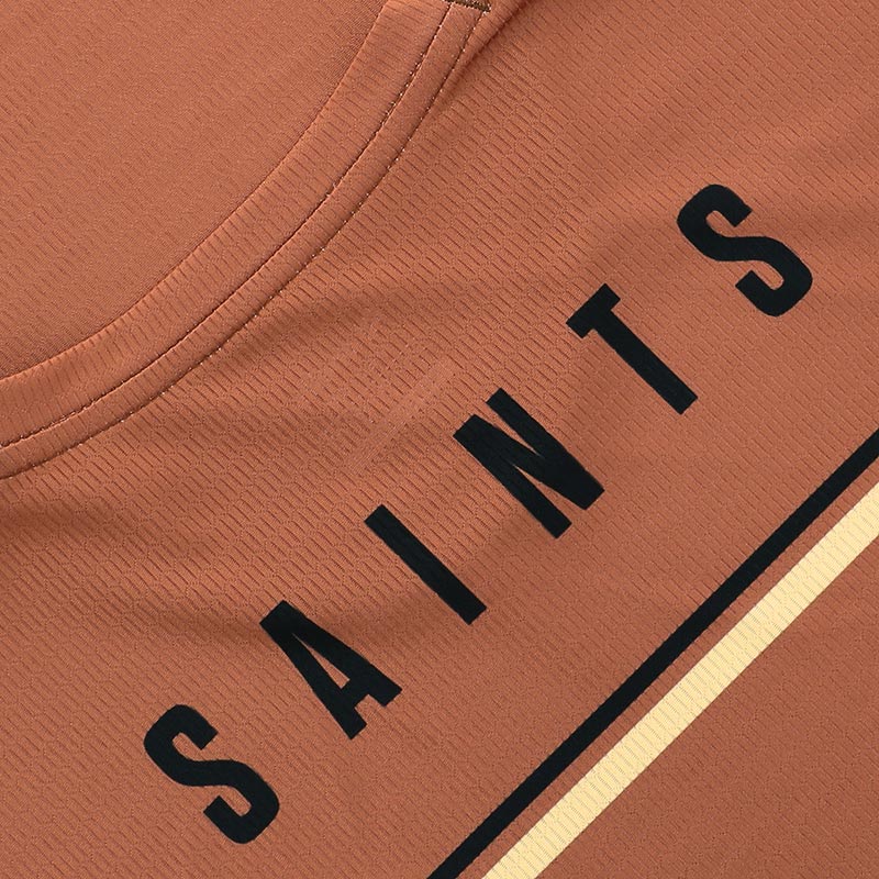 The back neck of the T-Shirt has the text SAINTS in Black Coloured letters sitting above similar two tone lines.