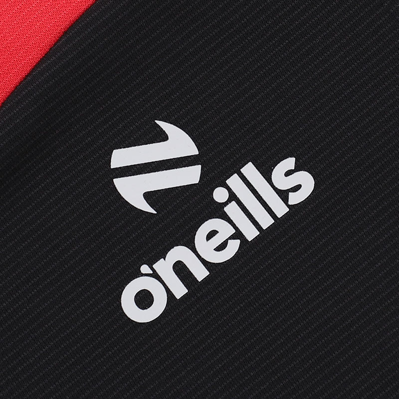 The Half Zip has a Black body, with a Red contrast panel on the upper front chest. The upper sleeves have a red flash. There is a tonal crest on the left chest and an O'Neill's logo on the right chest.