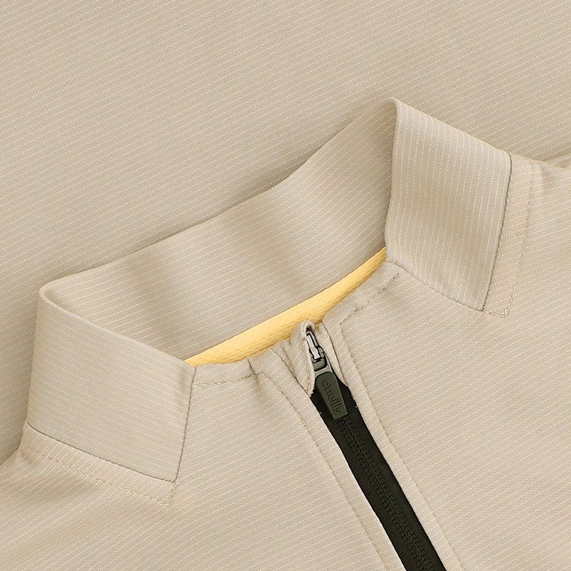 The top has a Stone body, with black zip neck.