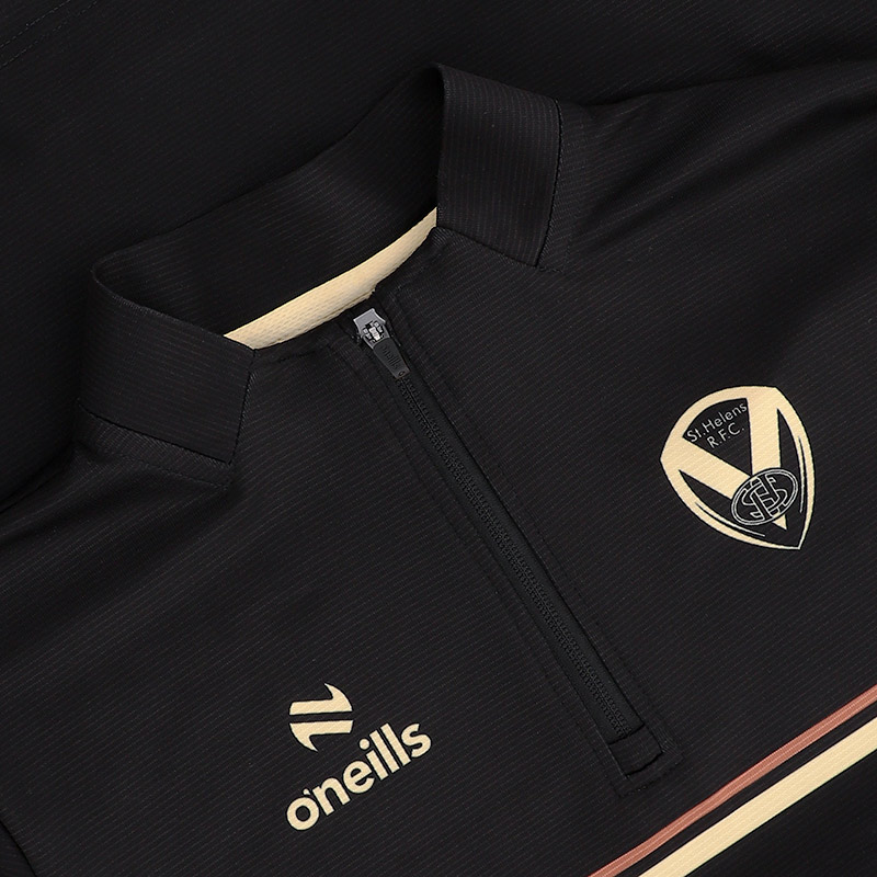 There is a 2 colour line across the centre chest both cuffs, and above that there is a tonal Saints crest on the left chest and O'Neill's logo on the right chest.
