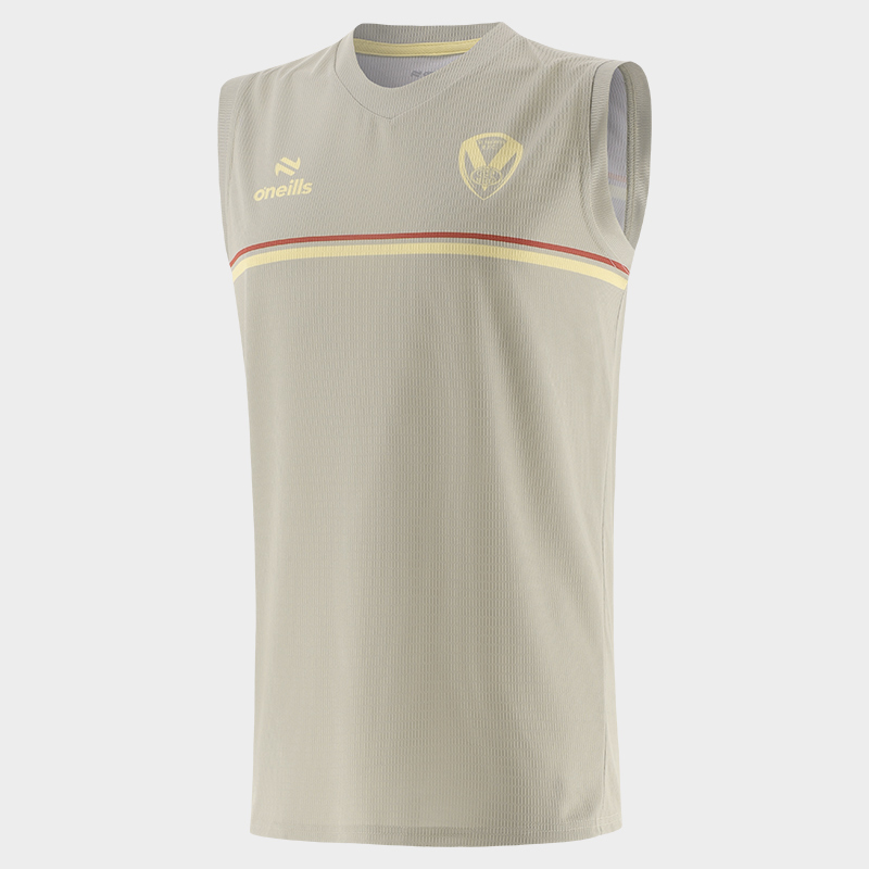 The vest is a Stone coloured body, with a modern stylish two colour line on the upper front chest. There is a tonal crest and O'Neill's logo above the line.