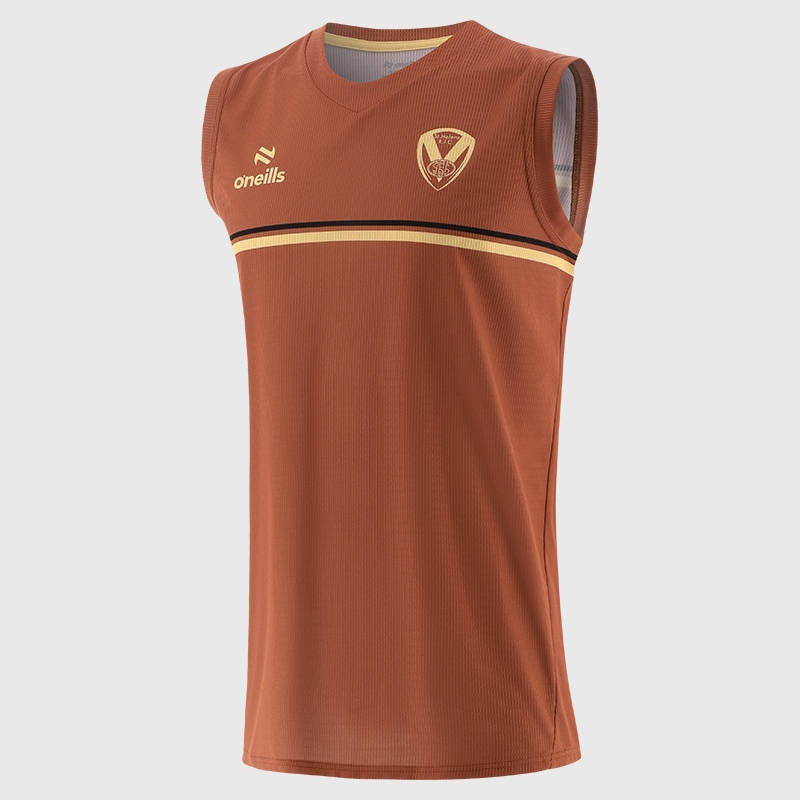 The vest is a Rust coloured body, with a modern stylish two colour line on the upper front chest. There is a tonal crest and O'Neill's logo above the line.